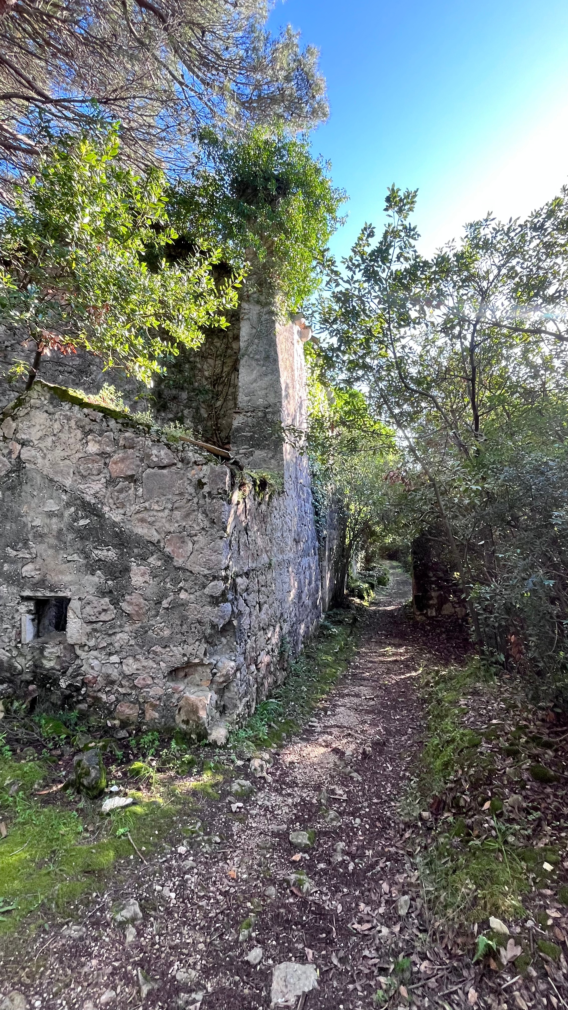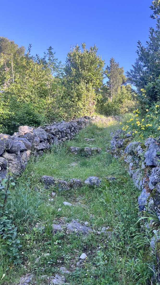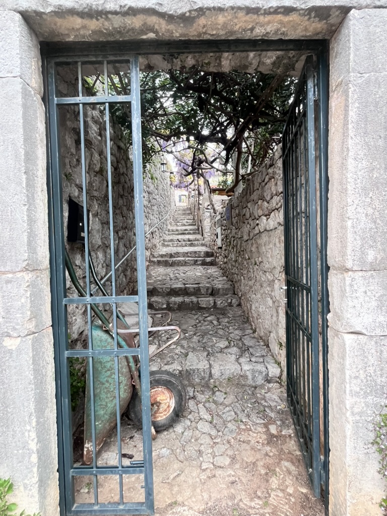 Some homes have been under renovation or construction for actual decades. People build as they have the money to. They often do it themselves. There are also legitimate logistical issues – there are no cars, just some golf cart sized-tractors, and many of the homes higher in the hills are accessible only by stairs, or overgrown wooded paths. Bringing both the materials and workers to build is incredibly labor intensive. There is a woman restoring a 14th Century chateau that we can see from the top of the hill for a decade (I would love to walk around that one, but it does truly have an OG stone wall twice as tall as me), bringing in supplies when she has the cash and labor.